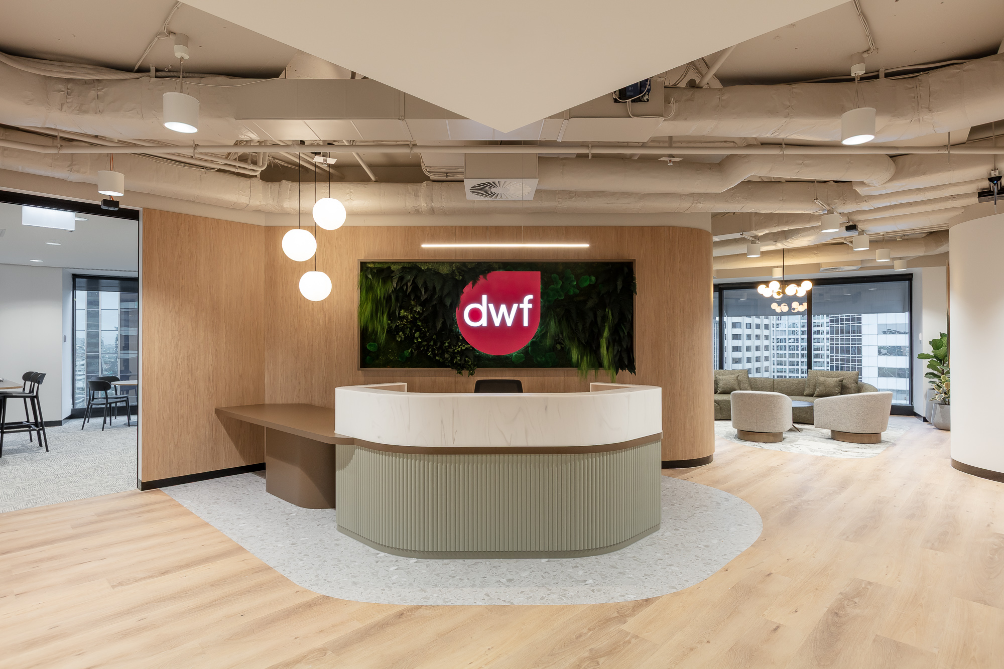 Working closely with DWF’s local stakeholders and aligning with their global design standards, Growth collaborated with Savills Project Management, acoustic engineers, and base building consultants to deliver the fitout in just 10 weeks.